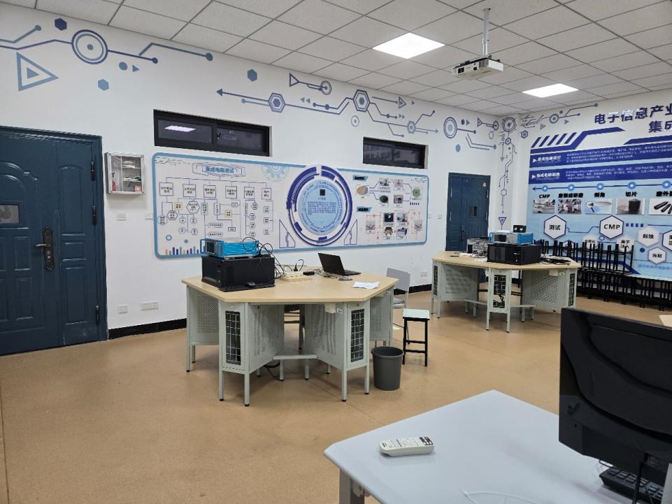近日,学院集成电路多功能实验实训室建设完成,现正式开放使用。实验室提供一体化集成电路教学、实验和实训平台,包括主控平台和实验用半导体参数测试仪及课程板卡。主控平台主要完成各类实验的设计,同时也是所有实验功能硬件板卡的承载基台。实验用半导体参数分析仪是实验测量与实验结果展示平台,同时也是各测试硬件板卡的承载基台,以及实验软件的承载基台。课程板卡基于紫光集团的器件和工艺产业资源长期迭代开发,已从28nm升级到14nm到7nm到5nm,并持续升级。目前配备的课程板卡可以进行二极管、双极型晶体管MOSFET、JFET、MESFET、HEMT、SOI、FinFET、TFT等器件的仿真及氧化、光刻、刻蚀、淀积、离子注入、扩散、退火和外延等工艺及器件制备仿真。实验室能完成半导体器件及工艺的实验设计教学,同时也能拓展集成电路设计、封装、制造、测试类课程及实验教学。