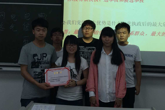 2015年5月17日晚上六点,在西校区三号楼302,电信学院各党支部(电信、计科、网络、电气、电科党支部)都将会参赛其中,电信、计科将派出两支队伍而其他党支部只需派出一支队伍,每支队伍有五名选手,由一名党员、两名预备党员、两名党校在读生或结业生构成。比赛将分为两部分,第一部分为理论考试,进行笔试,第二部分为现场答题,由笔试成绩优秀的选手参加,最终角逐出胜利的选手和团队。最终电信一支部、计科一支部荣获优胜团队,电信131的华成超荣获优秀个人称号。